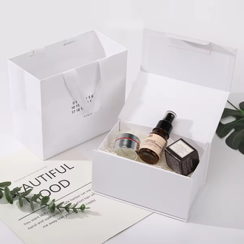 Customized Foldable Paperboard Gift Box with Handle Recycled Materials Glossy Lamination Embossing Magnets Ribbon Secure Closure